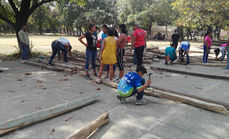 Acopio de materiales de reconstrucción y víveres para comedores comunitarios.